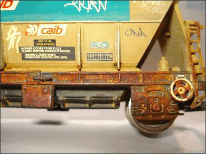 Keep the kitchen roll in one place, do not wipe side to side across the surface. Some rust paint is left on the model and some removed. Some rust paint will have been wetted by the damp kitchen roll and will change shade to look darker, just like old rust.