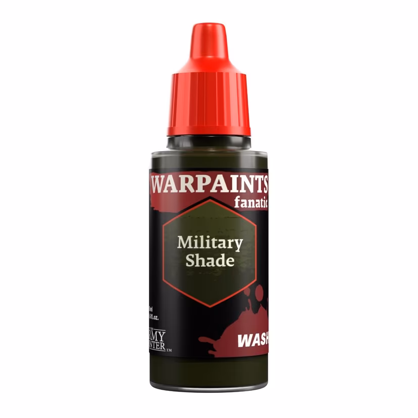 The Warpaints Fanatic Wash: Military Shade is a brownish green wash for applying a shade and reinforcing details on your miniature.